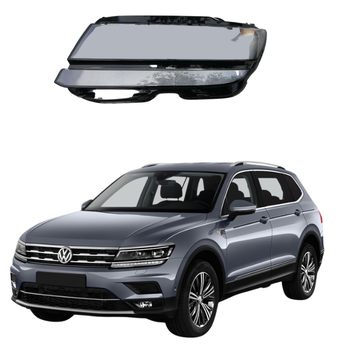 Стекло фары Volkswagen Tiguan 2 2016-н.в. левое LED изготовлено из прозрачного поликарбоната.